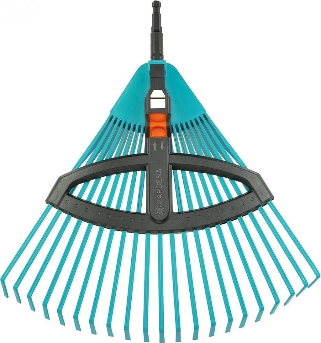 GARDENA combisystem Plastik Ayarlanabilen Tırmık yaprakları, çim kırpıntılarını, gözenekli malzemeler ve diğer bahçe döküntülerini tırmıkla toplamak için idealdir. Esnek plastik dişleri arasındaki genişlik kolayca ayarlanabilir. 35 ila 52 cm arasında değişen çalışma genişliğiyle, kaba veya ince taneli materyaller rahatlıkla tırmıklanabilir. Garanti süresi 25 yıldır.