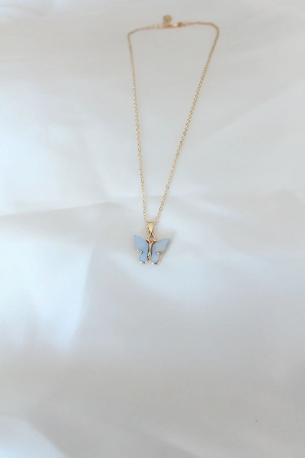 ® Gold Renk Kaplama Buz Mavisi Renk Sedefli Kelebek Kolye