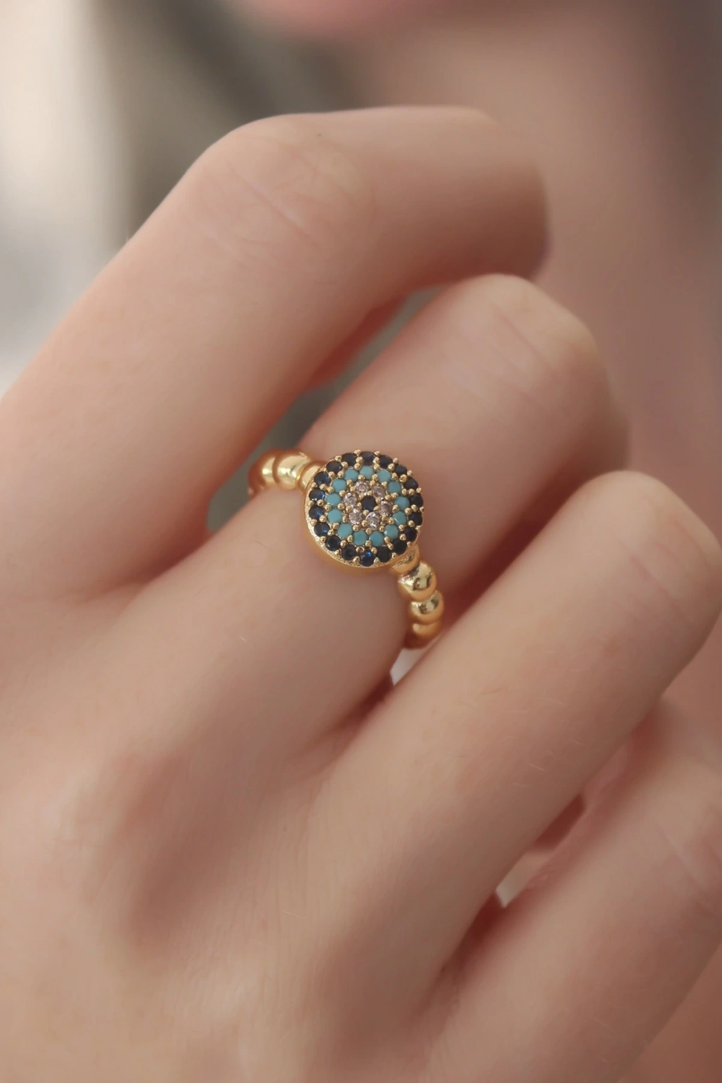 ® Gold Renk Nazar Boncuk Figür Zirkon Taş Detay Kadın Yüzük