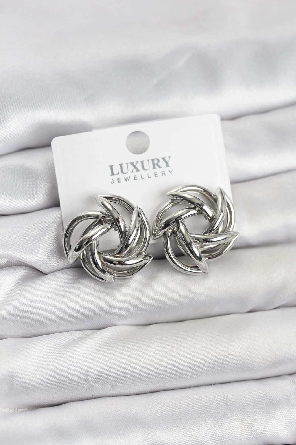 ® Gümüş Renk Pirinç Keskin Sarmal Model Kadın Küpe
