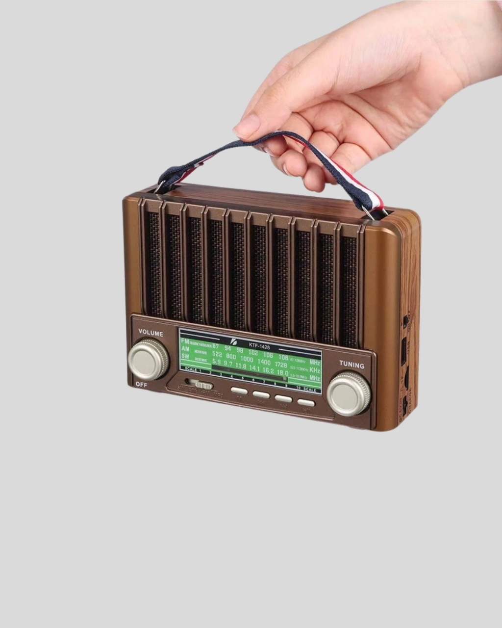 Nostaljik görünümüyle dikkat çeken KTF-1428 taşınabilir hoparlör, modern çağın tüm medya özelliklerini destekleyen gelişmiş yapısıyla hem kullanıcı dostu hem yüksek performanslı bir cihazdır. Ürünün en öne çıkan özelliklerinden biri, dahili solar panel ile elektrik bağlantısına ihtiyaç duymadan kendini şarj edebilmesidir. Bu sayede özellikle kamp, doğa yürüyüşü, köy ortamı, elektrik kesintileri ve bahçe kullanımında büyük bir avantaj sağlar. Güneş gördüğü anda enerji toplar ve böylece pil endişesi olmadan uzun süreli kullanım sunar.Cihazın radyo özellikleri oldukça kapsamlıdır. FM/AM/SW üç bantlı radyo alıcısı, farklı bölgelerdeki yayınları güçlü çekim kalitesiyle net şekilde dinlemenizi sağlar. SW (shortwave) kısa dalga özelliği, uzun mesafeli yayınları bile alabilir hale getirir. Bu da ürünü klasik radyo kullanıcıları ve doğa severler için vazgeçilmez kılar.Medya oynatma yönü de geniştir. Hoparlör; USB girişinden, SD karttan veya TF karttan doğrudan MP3 formatındaki müzikleri çalabilir. Kendi müzik listenizi rahatlıkla yanınızda taşıyabilir, ekstra cihaz gerektirmeden doğrudan oynatma yapabilirsiniz. Ayrıca Bluetooth bağlantısı sayesinde telefondan, bilgisayardan veya tabletten kablosuz müzik aktarımı mümkündür. Bu da ürünü modern kullanım alışkanlıklarına uygun bir hale getirir.AUX girişi sayesinde eski cihazlardan da ses aktarımı yapılabilir. Cihazın içinde bulunan şarj edilebilir 18650 batarya, uzun kullanım süresi sağlar ve bittikçe kolaylıkla değiştirilebilir. Bu batarya tipi, taşınabilir cihazlarda en dayanıklı enerji çözümlerinden biridir.KTF-1428, hem şık hem eski tarz görünümüyle nostaljik bir dekor ürünü olarak da kullanılabilir. Hafif yapısı, sağlam gövdesi ve taşıma kulpu sayesinde her yere kolayca götürülebilir. Bahçeden balkona, kamp alanından sahile kadar birçok yerde kullanılabilir. Hem radyo hem hoparlör hem de taşınabilir müzik sistemi olarak işlev gören bu model, çok yönlülüğüyle kullanıcılarına büyük bir konfor sağlar.