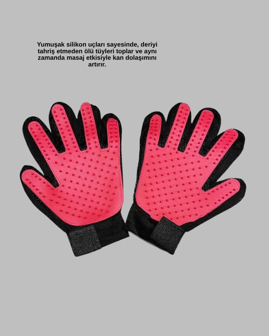 Evcil hayvan bakımı hiç bu kadar kolay olmamıştı!Bu tüy toplama ve masaj eldiveni, köpek, kedi, at ve diğer tüylü hayvanlar için uygundur.Yumuşak silikon uçları sayesinde ölü tüyleri nazikçe toplarken aynı anda masaj etkisi sağlar.Tüyler eldivenin yüzeyine yapışarak kolayca toplanır ve soyularak atılabilir.Bu sayede evinizdeki tüy miktarını azaltır, temizliği kolaylaştırır.Esnek kumaşı ve ayarlanabilir bilek bandı sayesinde herkesin eline uygundur.Makinede yıkanabilir, dayanıklı ve uzun ömürlü yapısı ile hijyenik kullanım sağlar.Cilt dostu silikon yapısı sayesinde hayvanın derisine zarar vermez, kaşınma veya tahriş oluşturmaz.Hem evcil dostunuzun konforu hem evinizin temizliği için mükemmel bir çözümdür.