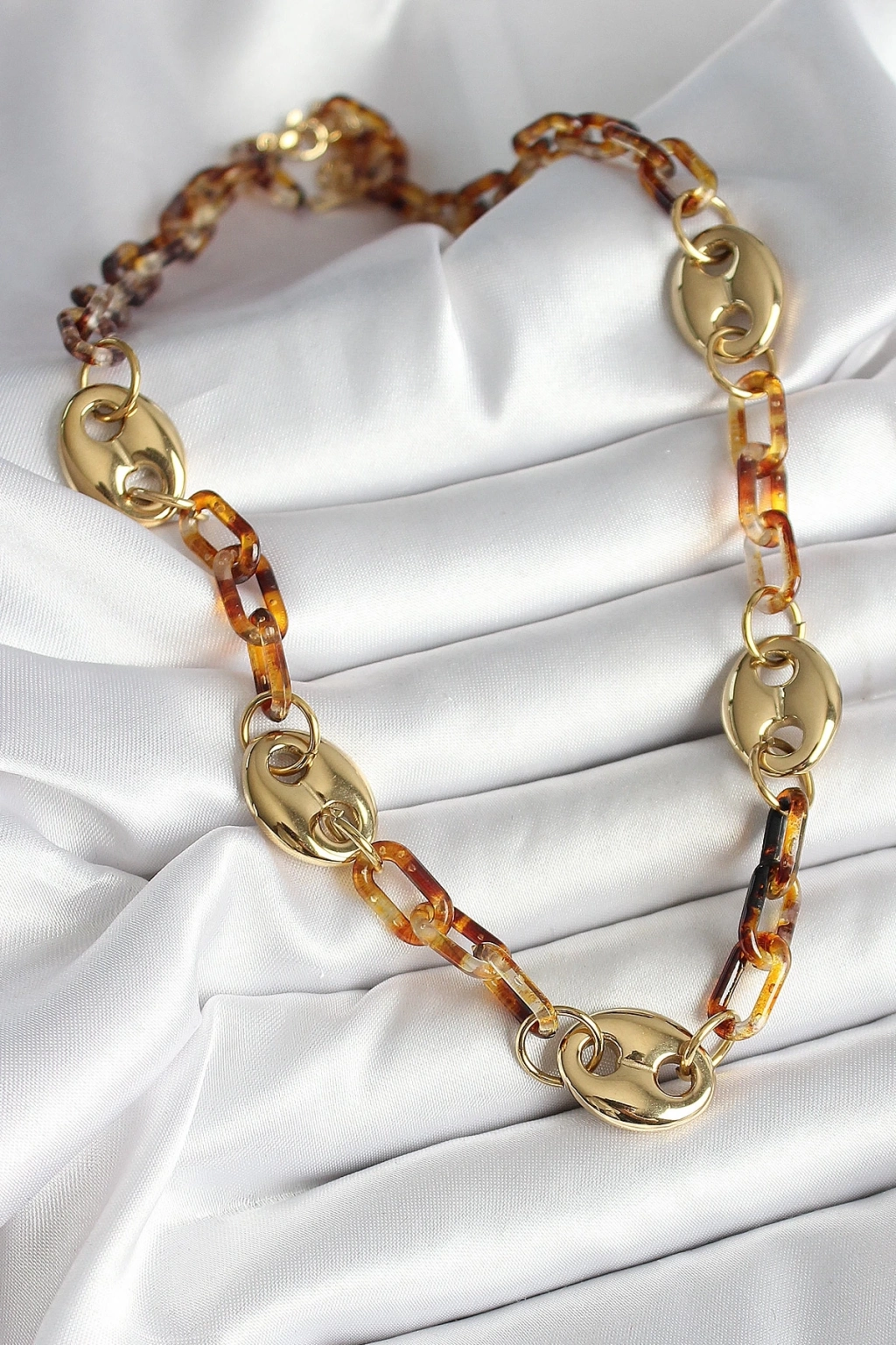 ® Leopar Desenli Mika Gold Renk Zincir Kadın Kolye
