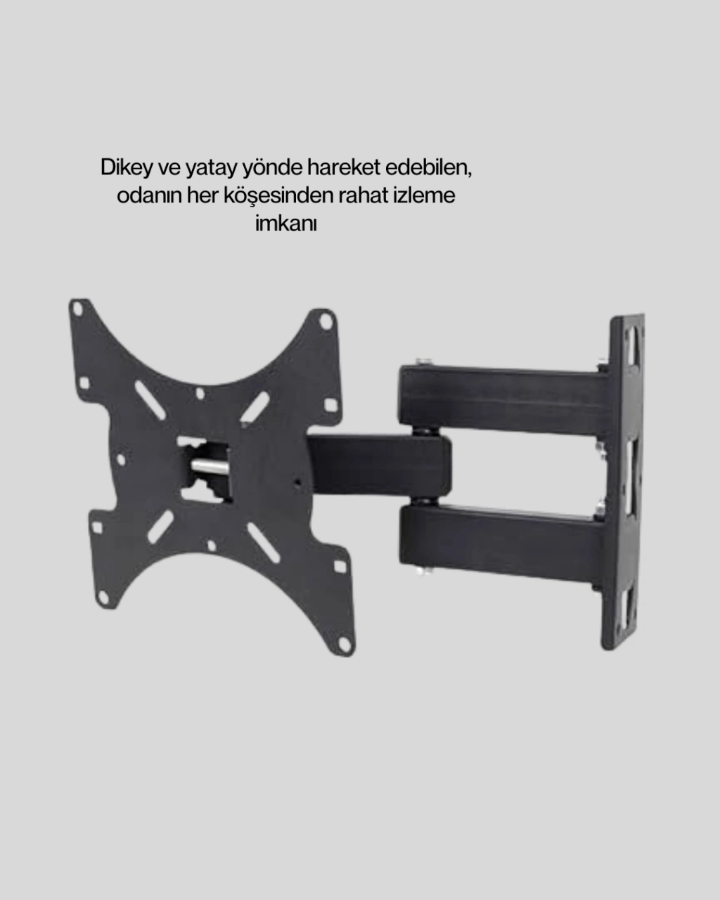 LED ve LCD televizyonlar için uyumlu olan bu duvar askı aparatı, modern dizaynı ile yaşam alanlarınıza şıklık katar. Hareketli mekanizması sayesinde televizyonunuzu farklı açılardan rahatça izleyebilirsiniz. Özellikle dar alanlarda kullanım için avantaj sağlar.Dayanıklı malzemeden üretilmiş olup uzun süreli kullanım sunar. Montaj aparatları ile birlikte gönderilir ve kullanıcıya kolay kurulum imkânı tanır.