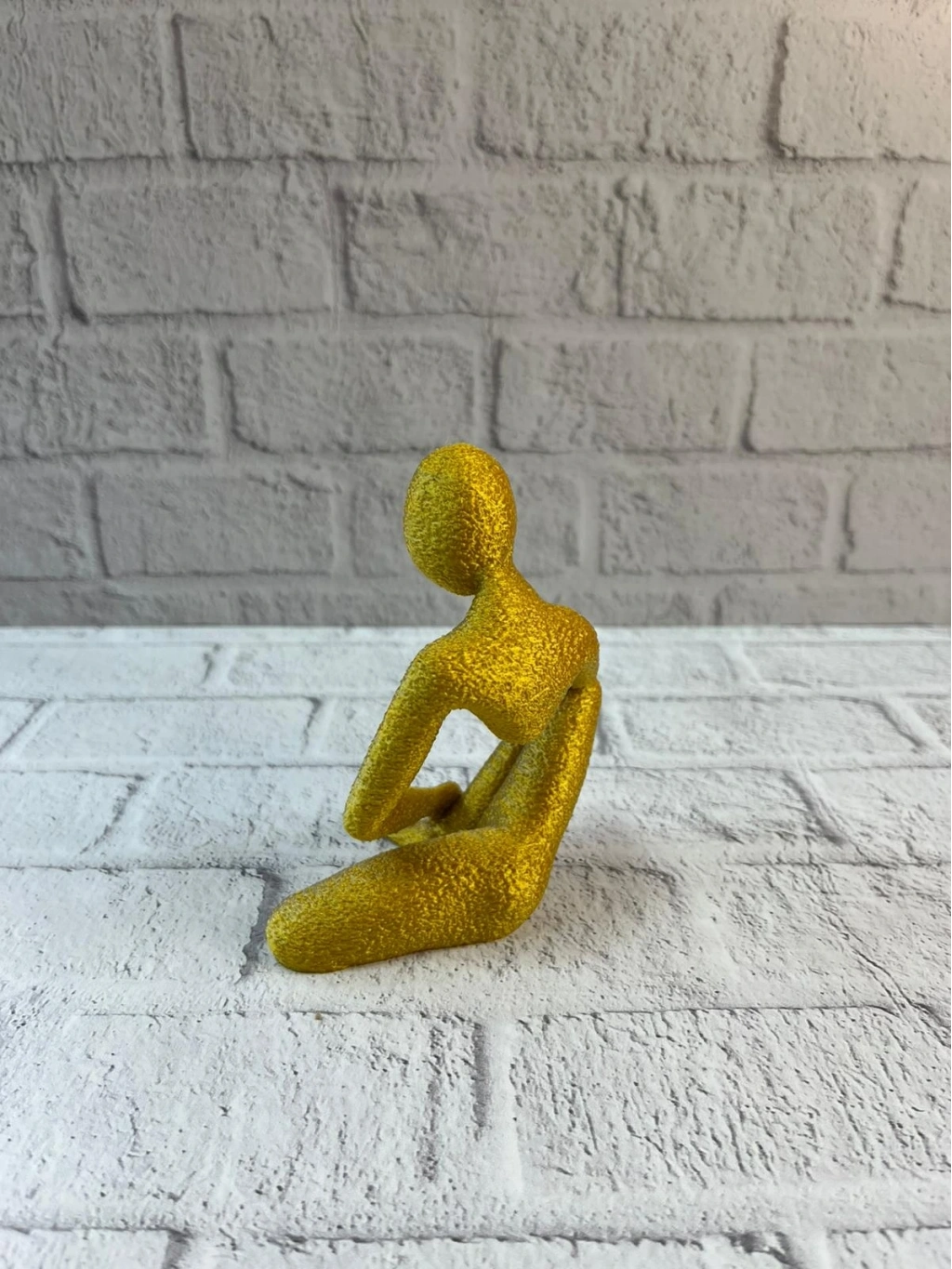 Sarı insan figürü biblo, düşünceli duruşu ve yalın tasarımıyla dekorasyona karakter katar. Küçük boyutları sayesinde dar alanlarda bile estetik bir tamamlayıcı olarak tercih edilebilir. Evde, ofiste veya çalışma alanlarında masa üstü ya da raf dekoru olarak kullanılabilir. Loş ya da aydınlık ortamlarda şık bir duruş sergileyerek mekâna modern bir hava kazandırır.