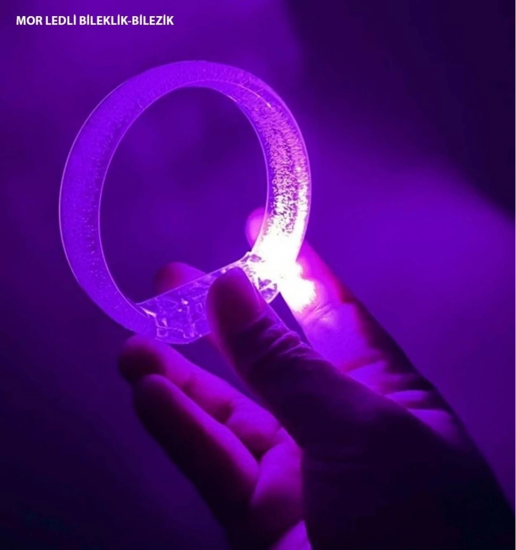 Mor Led Işıklı Baskı Yapılabilen Pilli Bileklik Bilezik 1,5 cm Genişlik