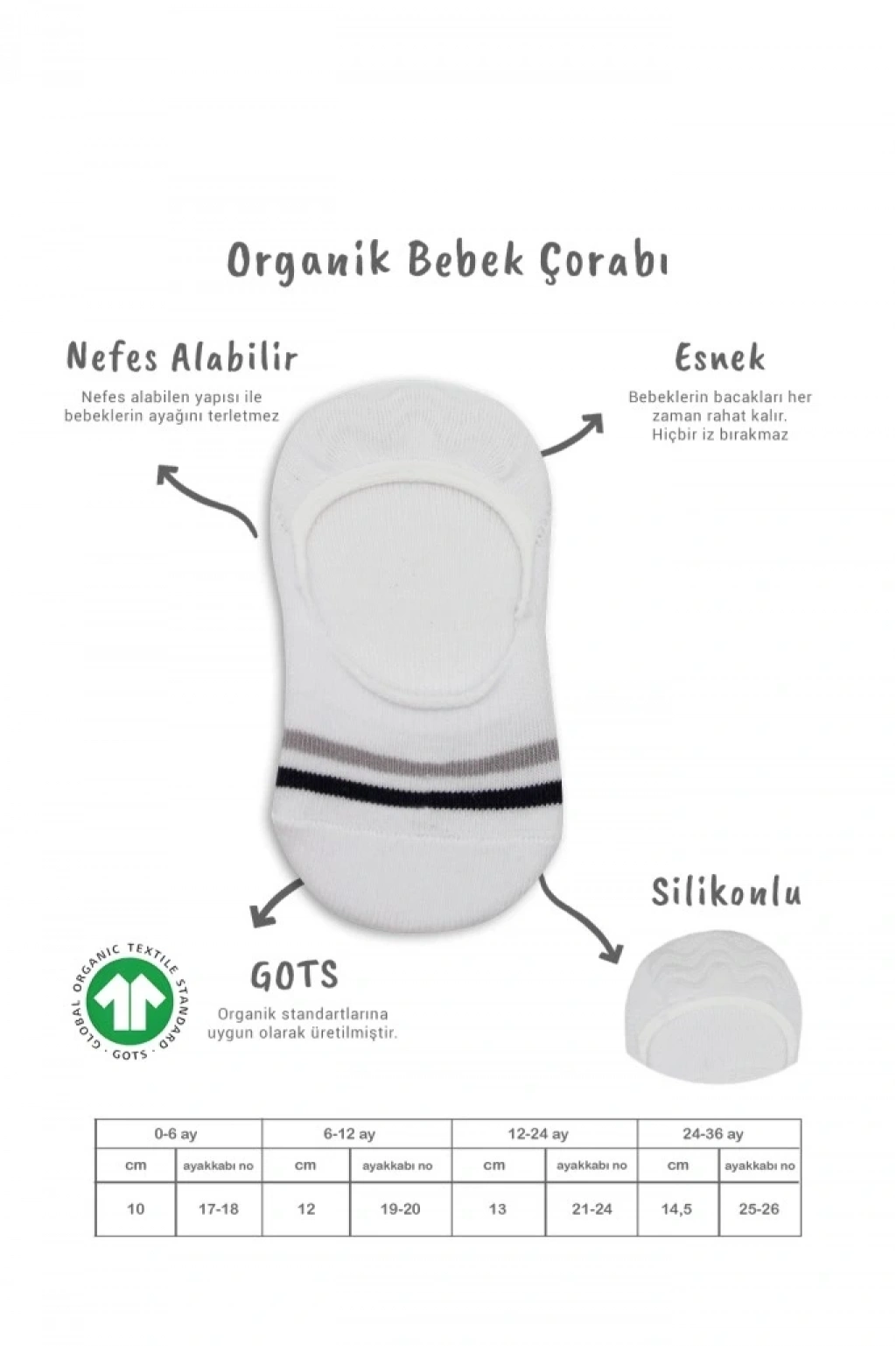® 2'Li Penye Babet Silikon Çemberli Çorap 30102 Gri Beyaz