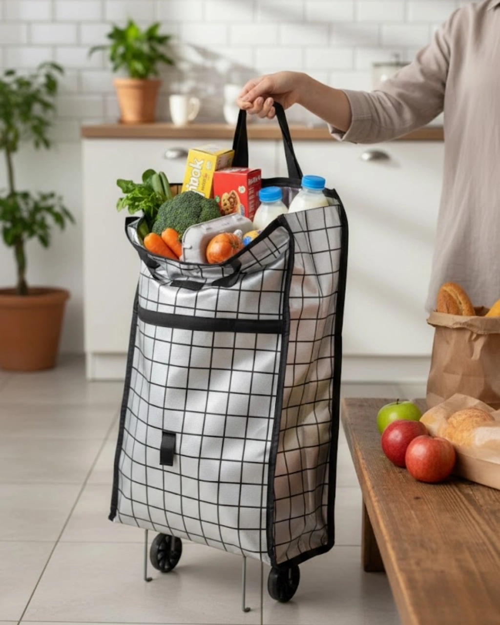 Şehir hayatında alışverişi kolaylaştıran bu tekerlekli pazar çantası, fonksiyonel tasarımıyla öne çıkar. Geniş hacmi, dayanıklı kumaşı ve sağlam tekerlek yapısı sayesinde günlük kullanımda güven verir. Alışveriş sırasında ürünleri düzenli şekilde taşımanıza yardımcı olur.Tekerlekli mekanizma, ağır yükleri zahmetsizce taşımanızı sağlar. Özellikle uzun mesafelerde veya yokuşlu alanlarda kullanıcıya büyük avantaj sunar. Ergonomik tutma sapı sayesinde kontrol kolaydır ve sürüş sırasında denge korunur.Evde, pazarda veya markette rahatlıkla kullanılabilen bu çanta, günlük alışveriş rutininizi daha konforlu hale getirir. Dayanıklı yapısı ve pratik kullanımı ile uzun süre güvenle tercih edilebilir.