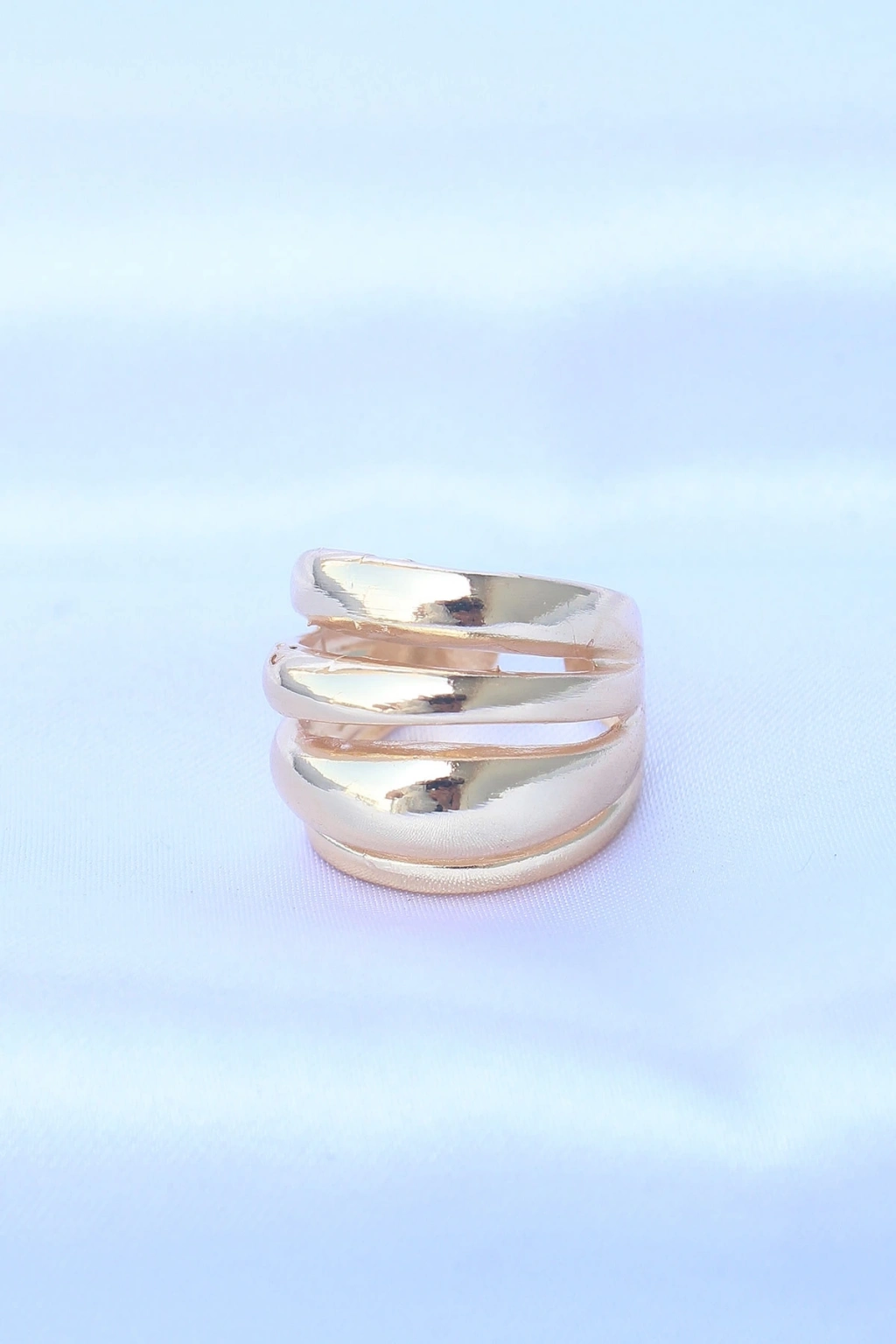 ® Pirinç Gold Renk Ayarlanabilir Tırtıklı Bombe Yüzük