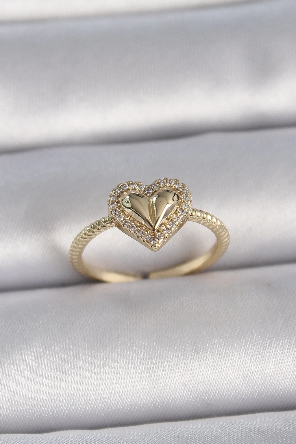 ® Pirinç Gold Renk Ayarlanabilir Zirkon Taşlı Kalp Model Kadın Yüzük
