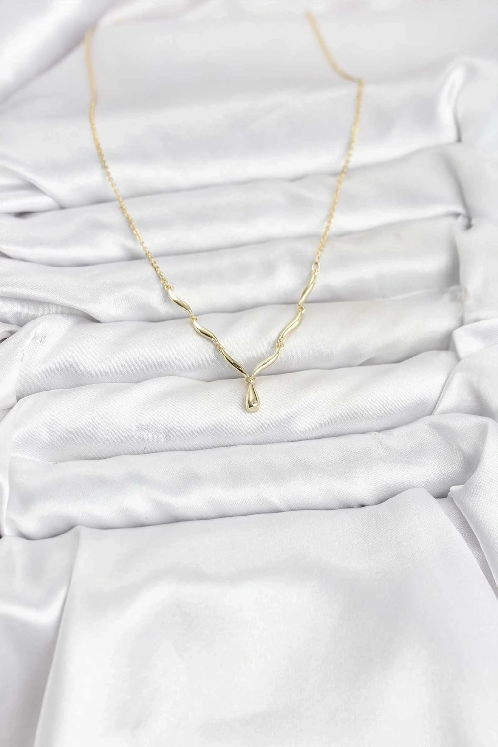 ® Pirinç Gold Renk Damla Model Kadın Kolye