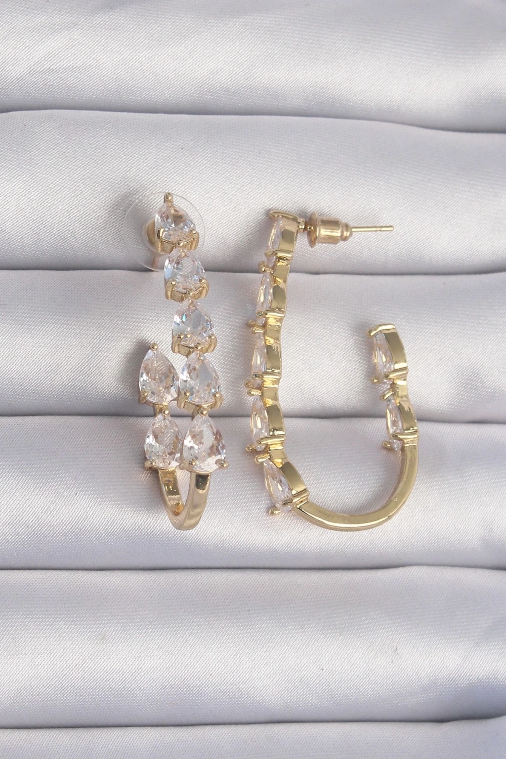 ® Pirinç Gold Renk Damla Zirkon Taş Tasarımlı Küpe