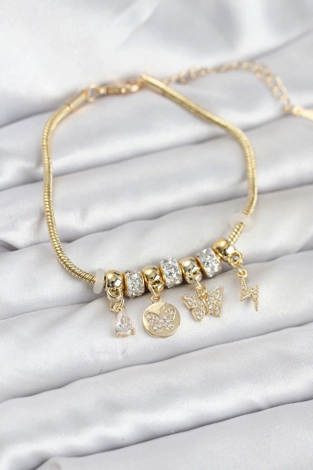 ® Pirinç Gold Renk Kelebek Charmlı Kadın Bileklik