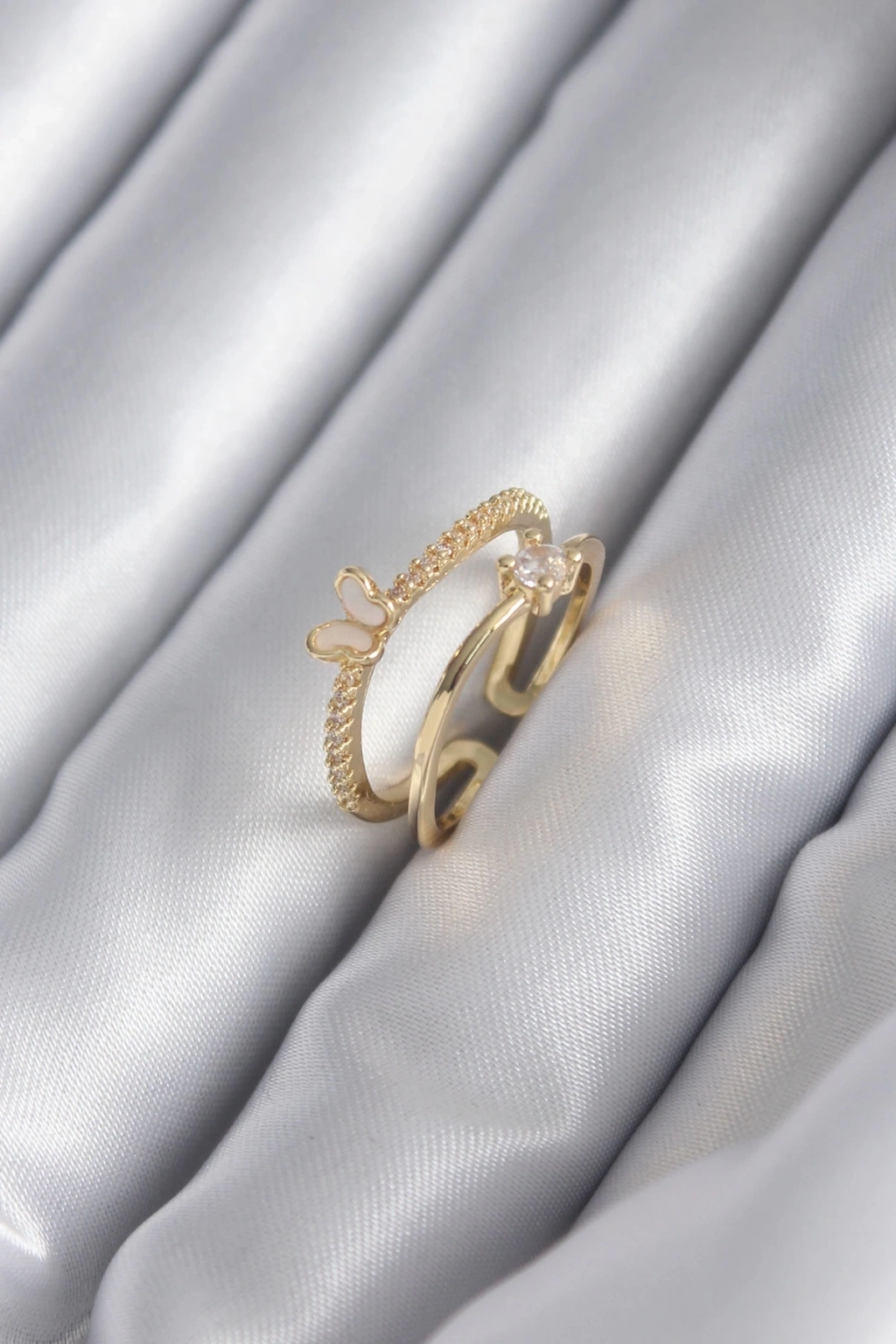 ® Pirinç Gold Renk Zirkon Taş Detay Kelebek Model Kadın Yüzük