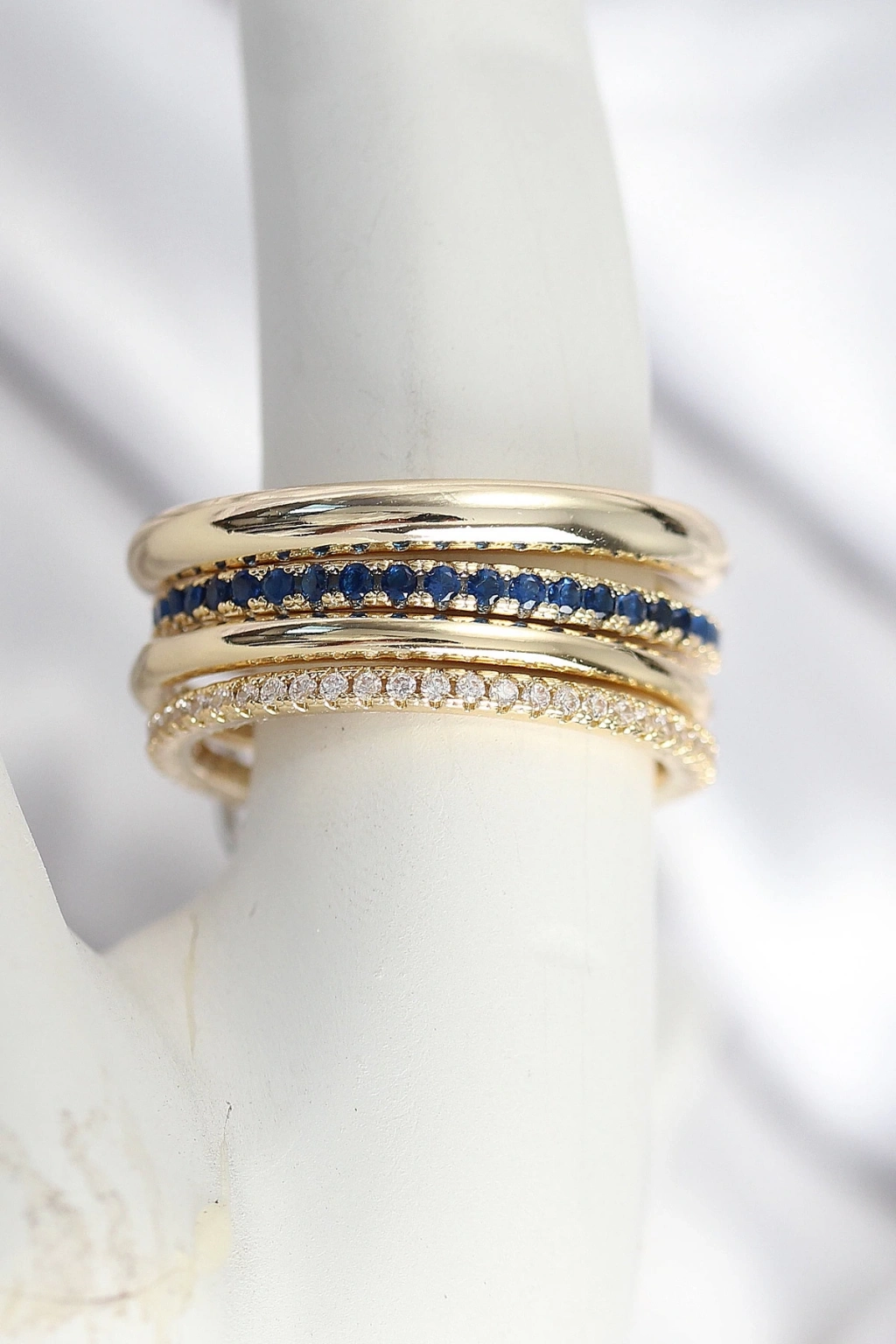 ® Pirinç Gold Renk Zirkon Taşlı 4'Lü Kadın Yüzük
