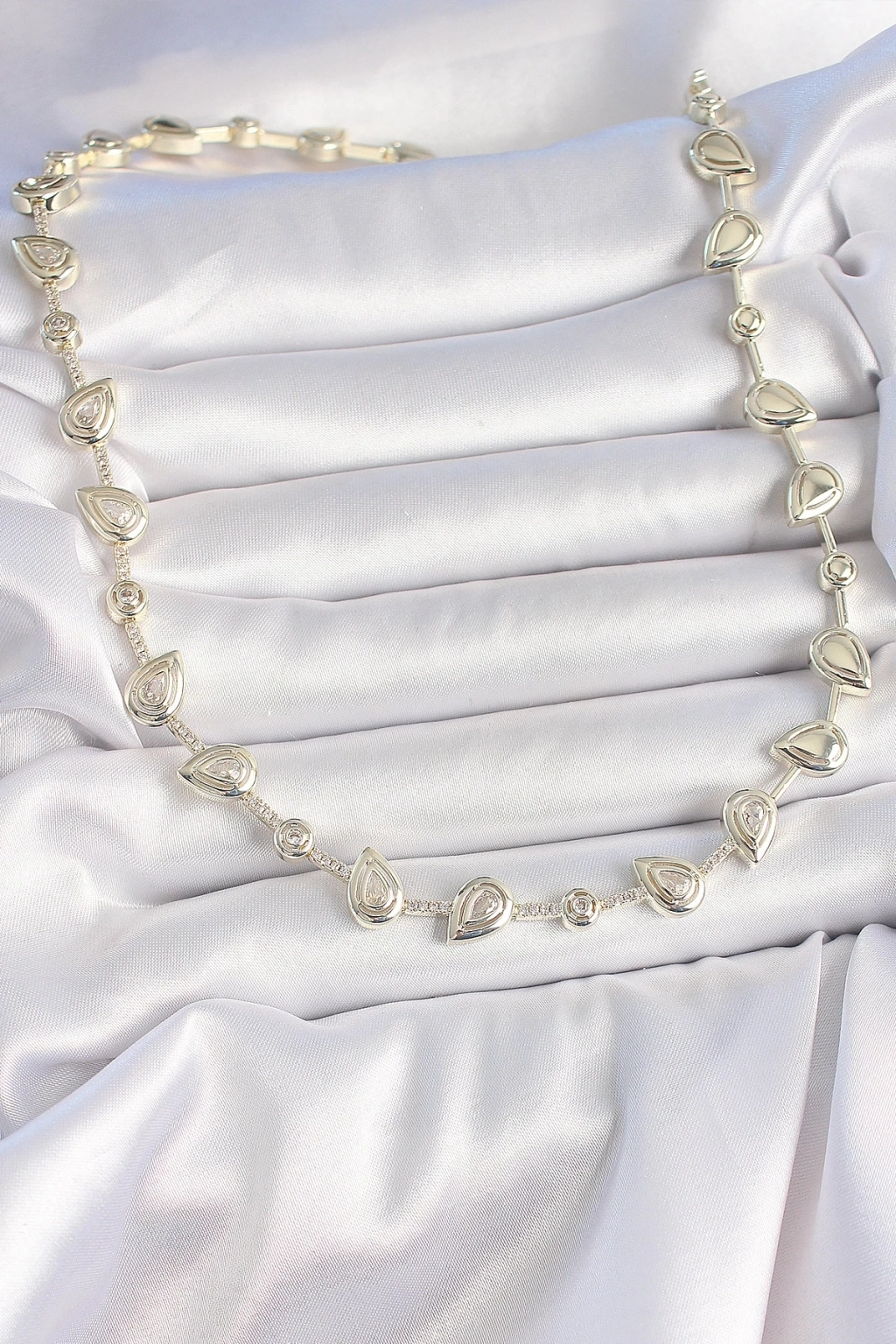 ® Pirinç Gold Renk Zirkon Taşlı Damla Model VIP Seri Exclusive Kadın Kolye