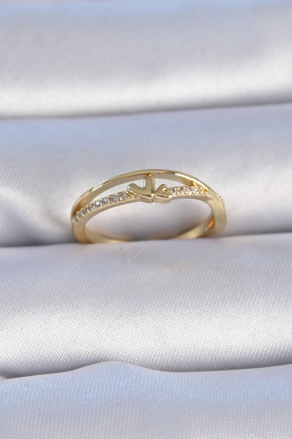 ® Pirinç Gold Renk Zirkon Taşlı Kalp Model Kadın Yüzük