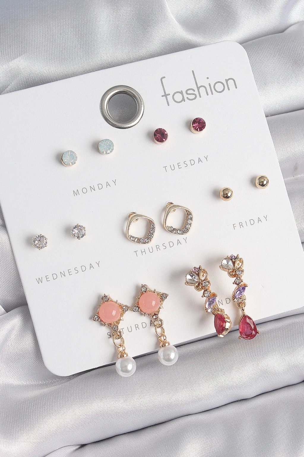 ® Pirinç Gold Renk Zirkon Taşlı Sallantı İnci Detay 7 Çift Kadın Küpe