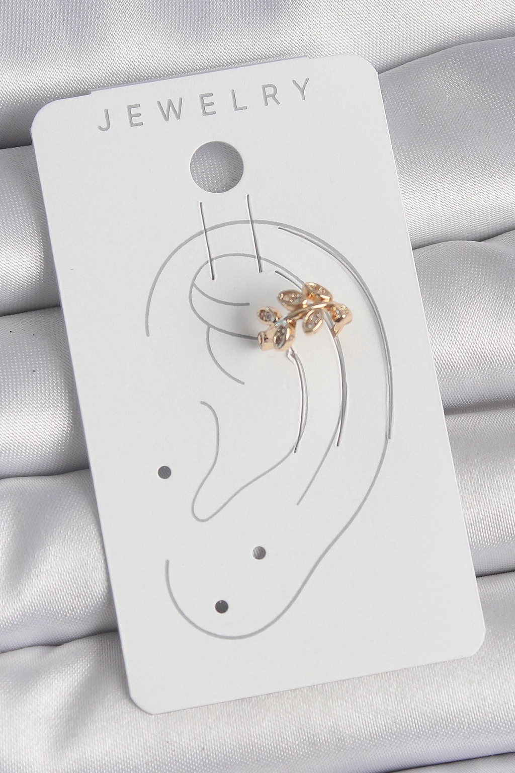® Pirinç Gold Renk Zirkon Taşlı Yaprak Model Kadın Kıkırdak Küpe