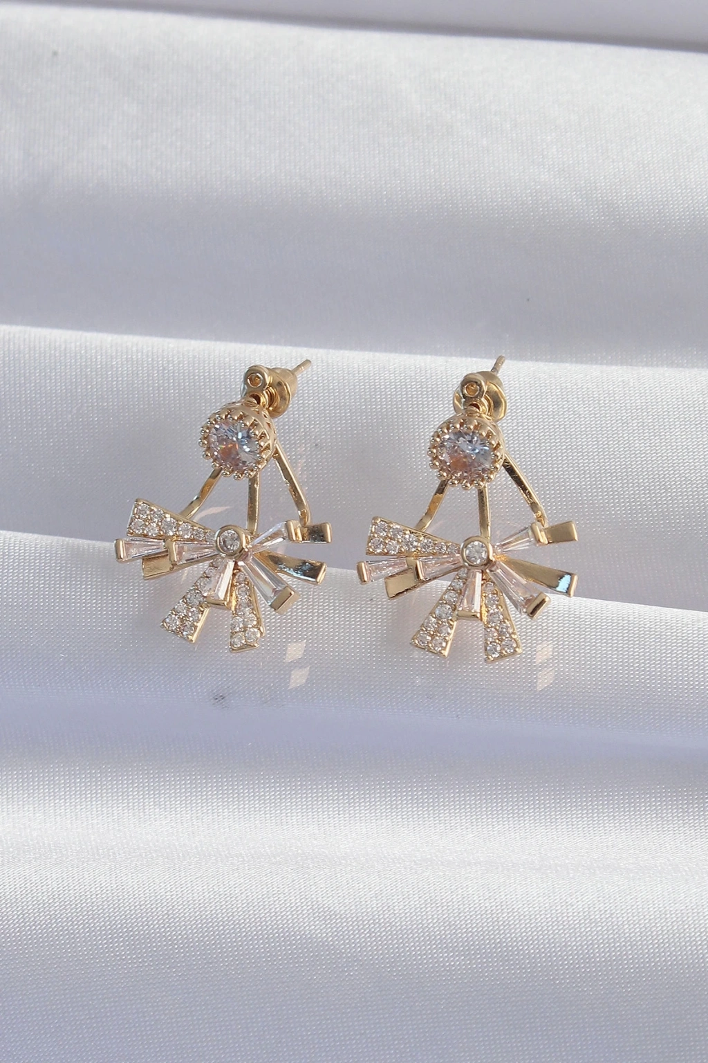 ® Pirinç Gold Renk Zirkon Taşlı Yassı Fiyonk Model Küpe