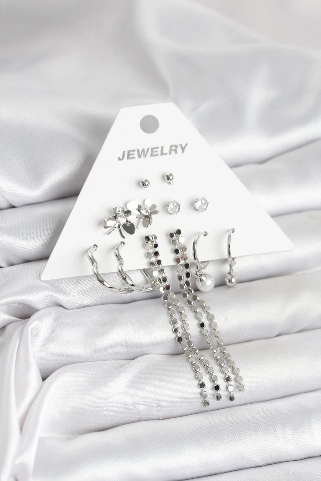 ® Pirinç Gümüş Renk 6 Çift Kadın Küpe