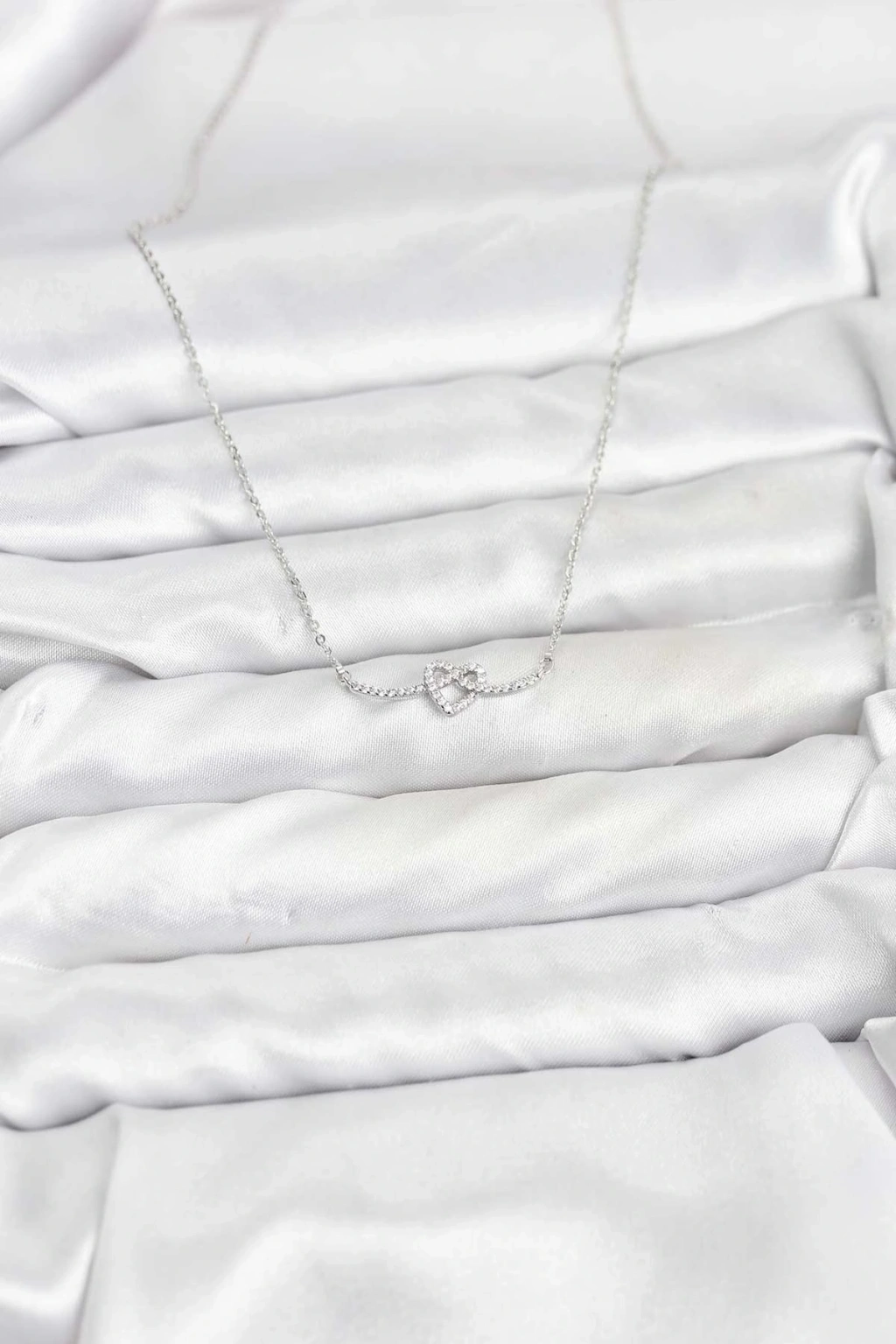® Pirinç Gümüş Renk Düğüm Kalp Model Kadın Kolye