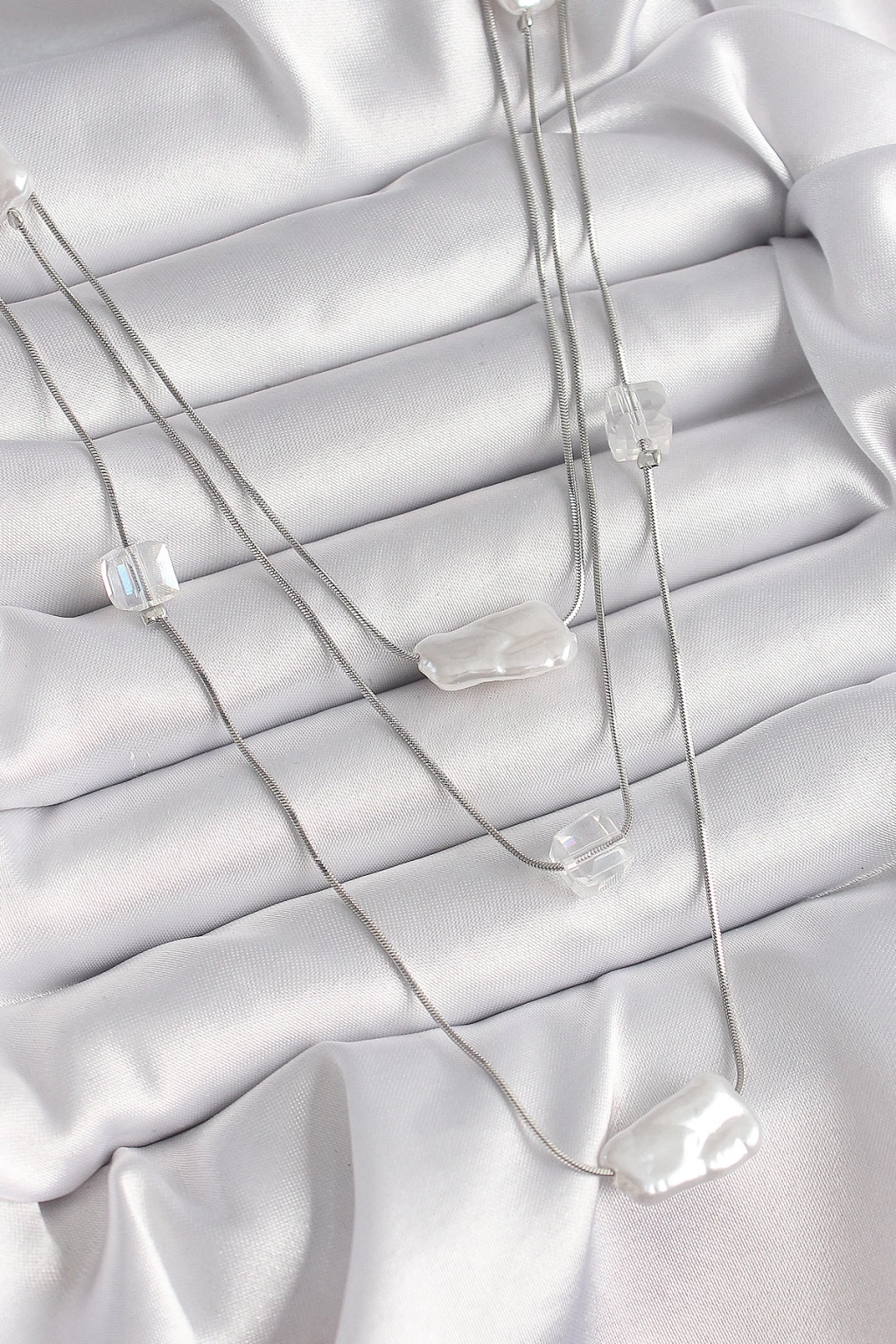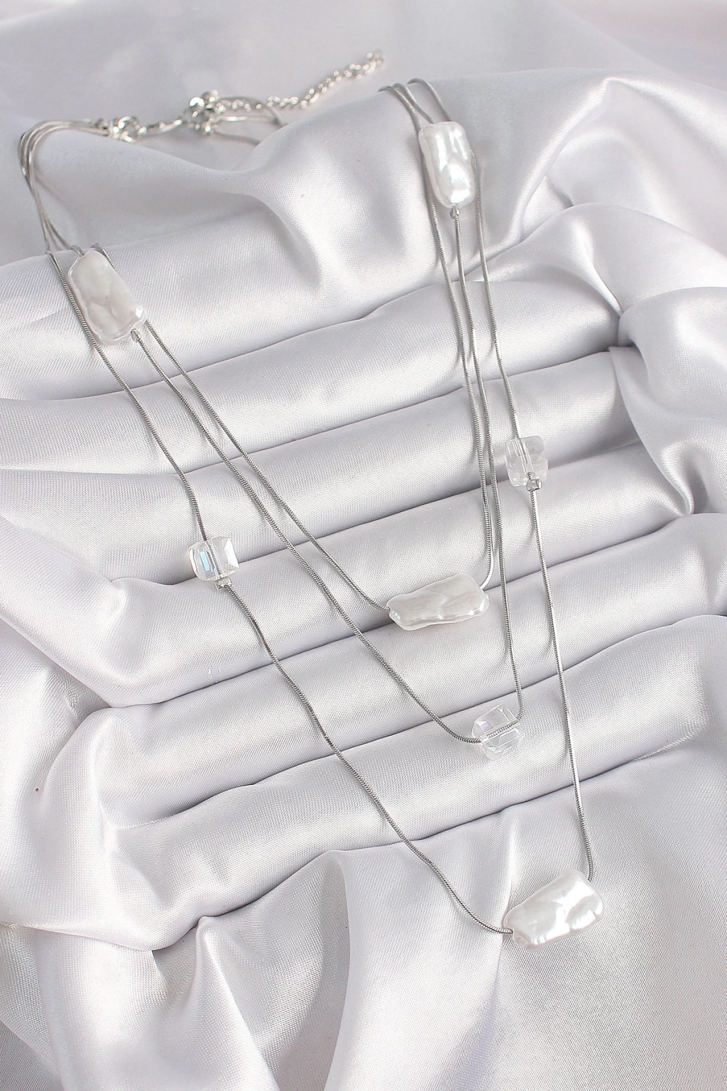 ® Pirinç Gümüş Renk Ezme İnci Model Çoklu Kadın Kolye