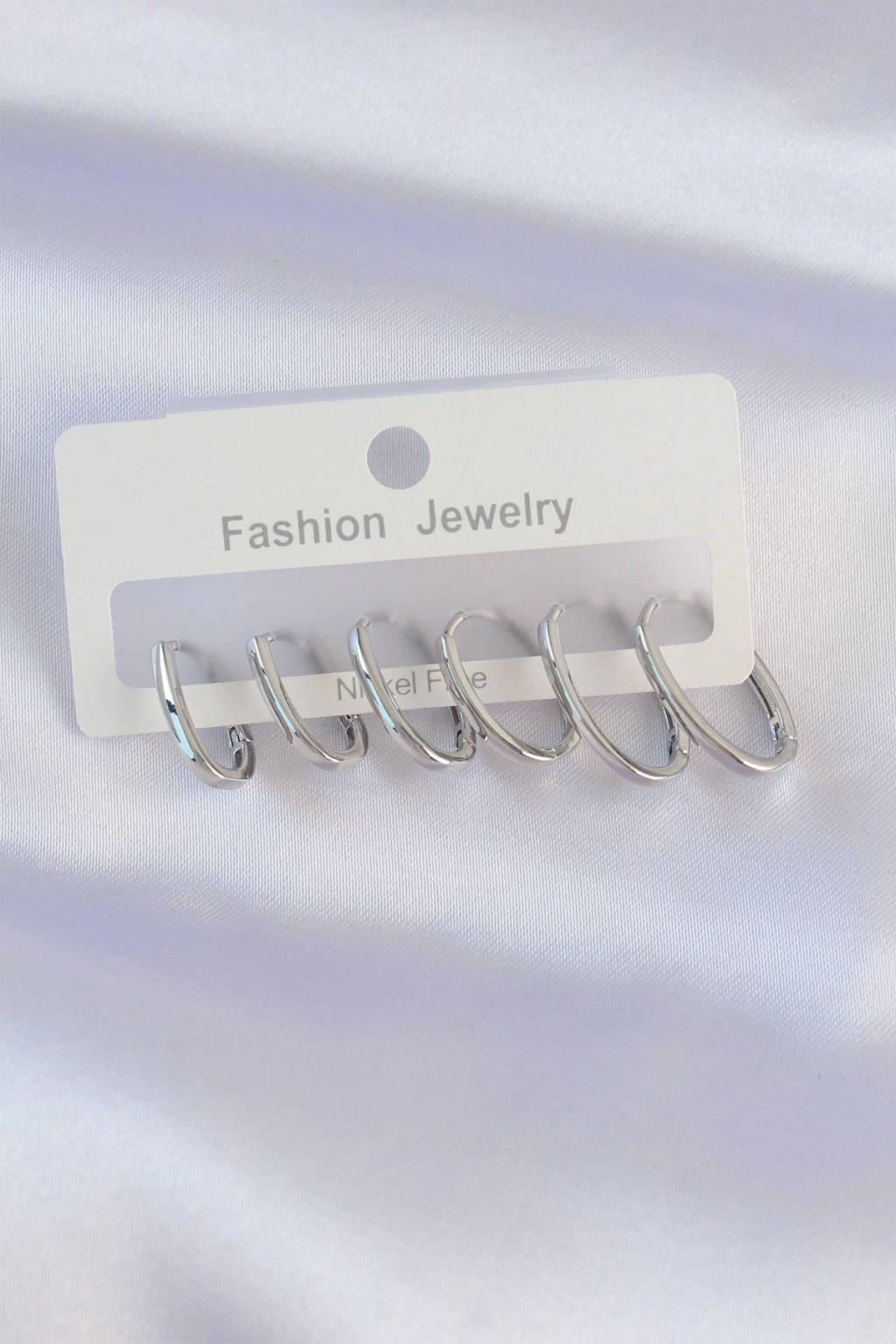 ® Pirinç Gümüş Renk İnce Oval Küpe Seti