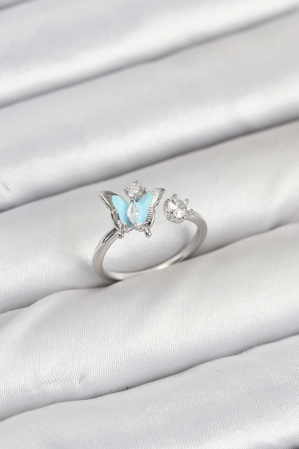 ® Pirinç Gümüş Renk Kelebek Model Kadın Yüzük