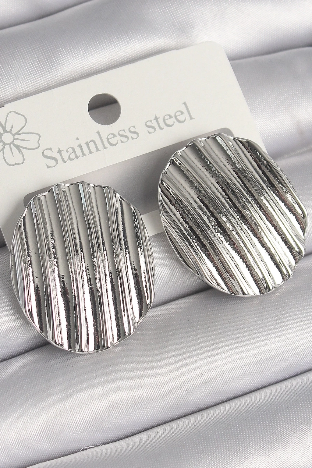 ® Pirinç Gümüş Renk Sallantı İşlemeli Daire Plaka Model Kadın Küpe