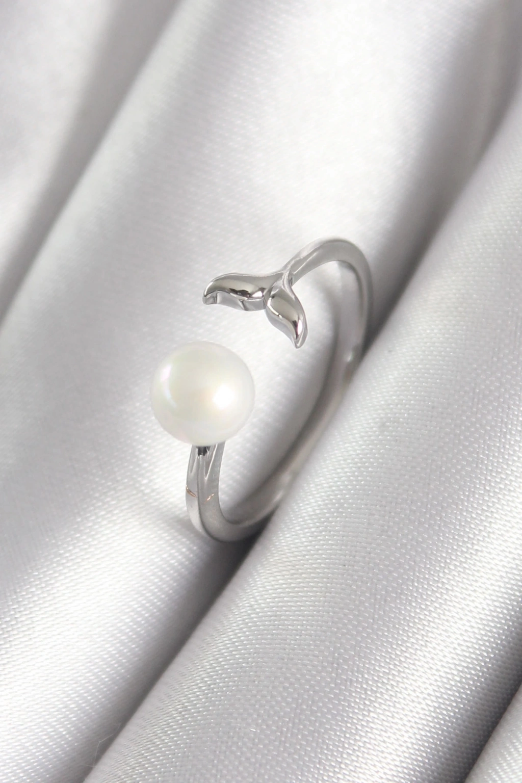 ® Pirinç Gümüş Renk Top İnci Figür Balık Kuyruğu Model Kadın Yüzük