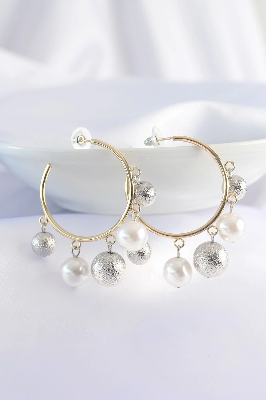 ® Pirinç Gümüş Renk Topçuk Model Gold Renk Halka Küpe