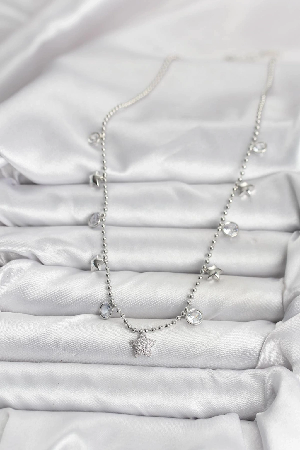 ® Pirinç Gümüş Renk Yıldız Model Kadın Kolye