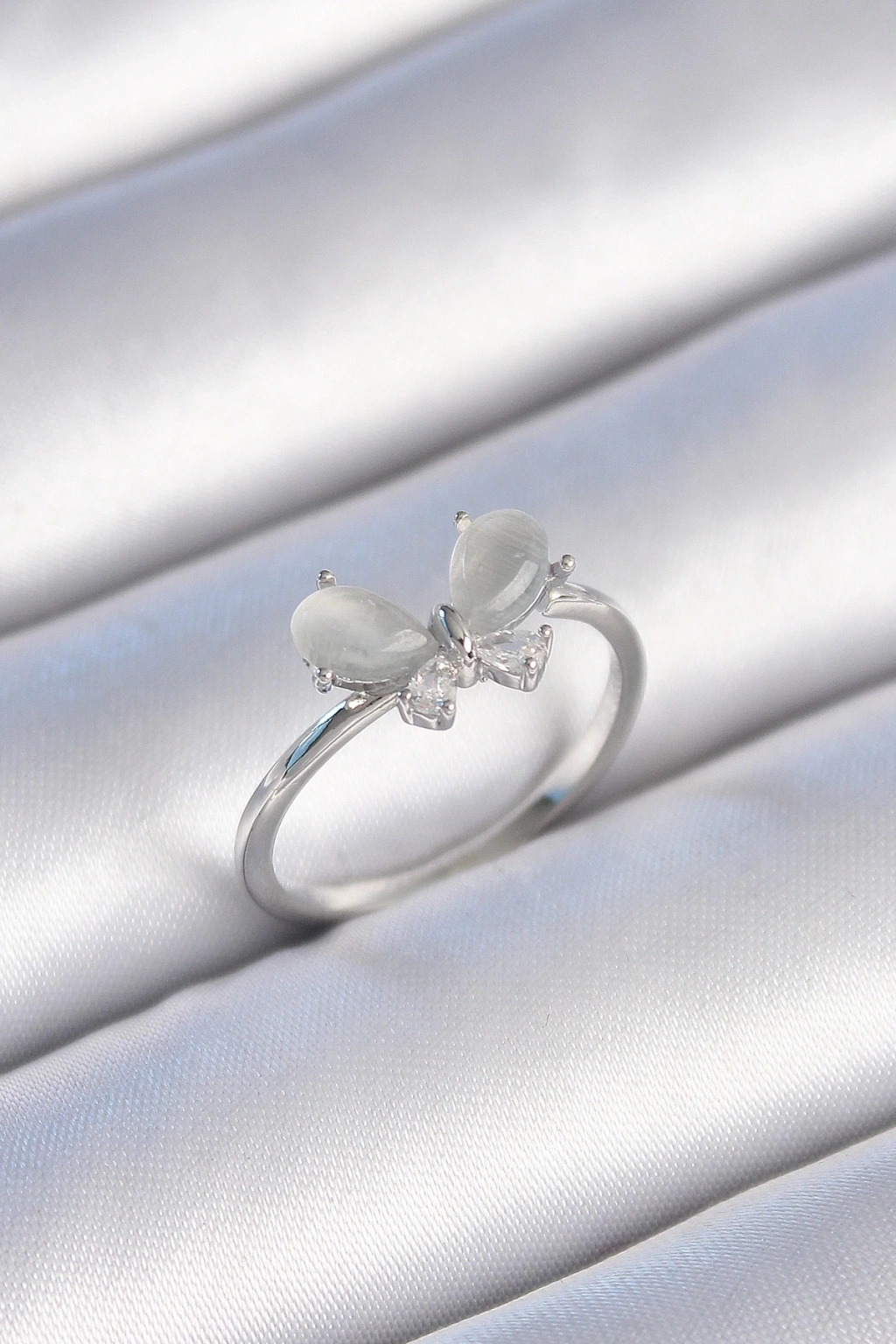 ® Pirinç Gümüş Renk Zirkon Taşlı Beyaz Mineli Kelebek Model Kadın Yüzük