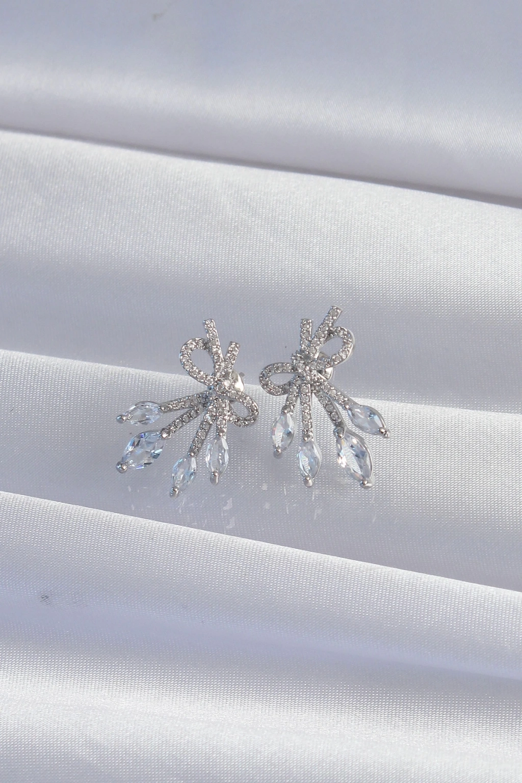 ® Pirinç Gümüş Renk Zirkon Taşlı Fiyonk Küpe