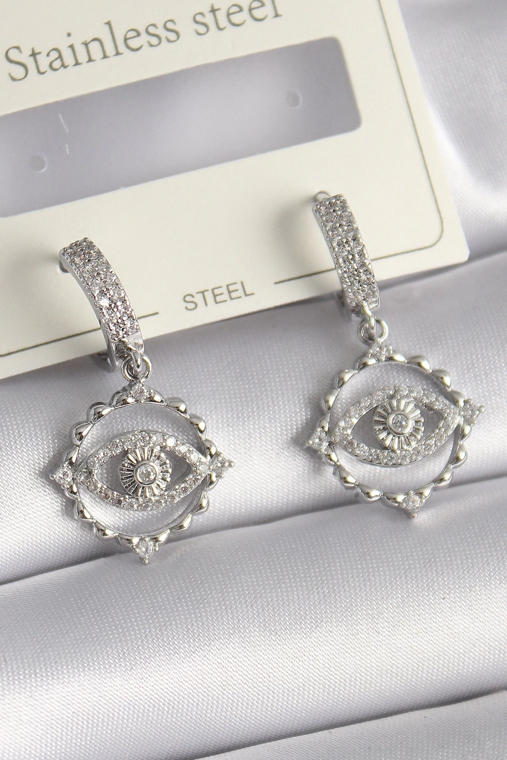 ® Pirinç Gümüş Renk Zirkon Taşlı Göz Model Kadın Küpe