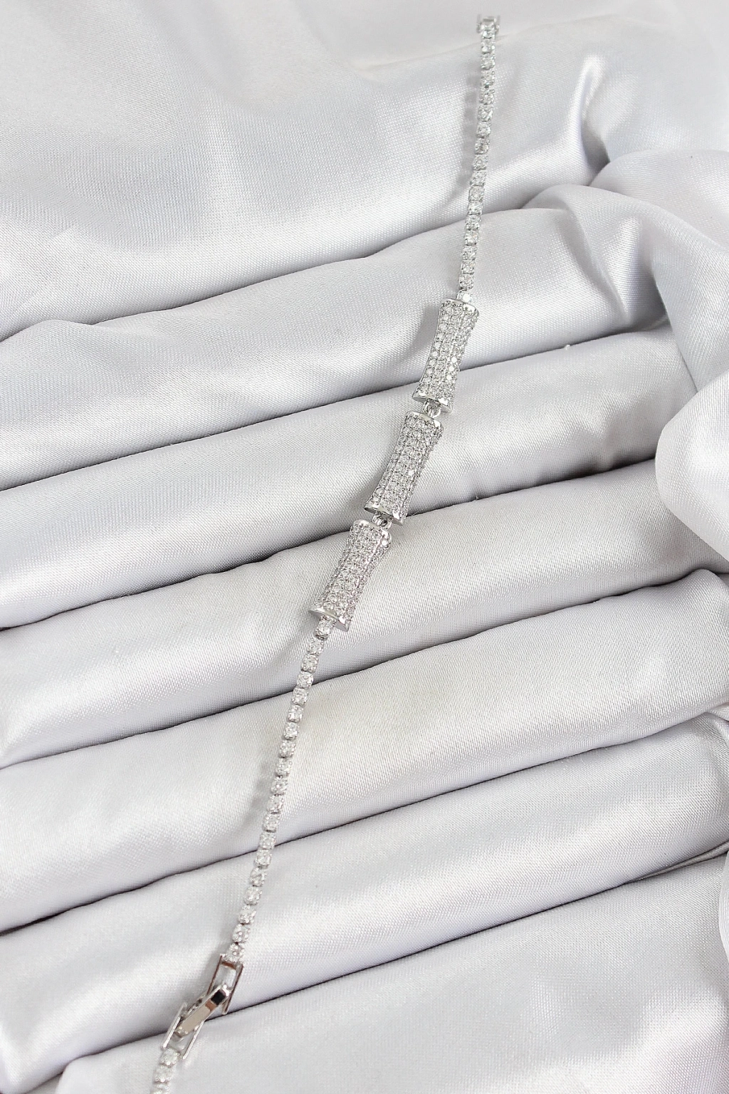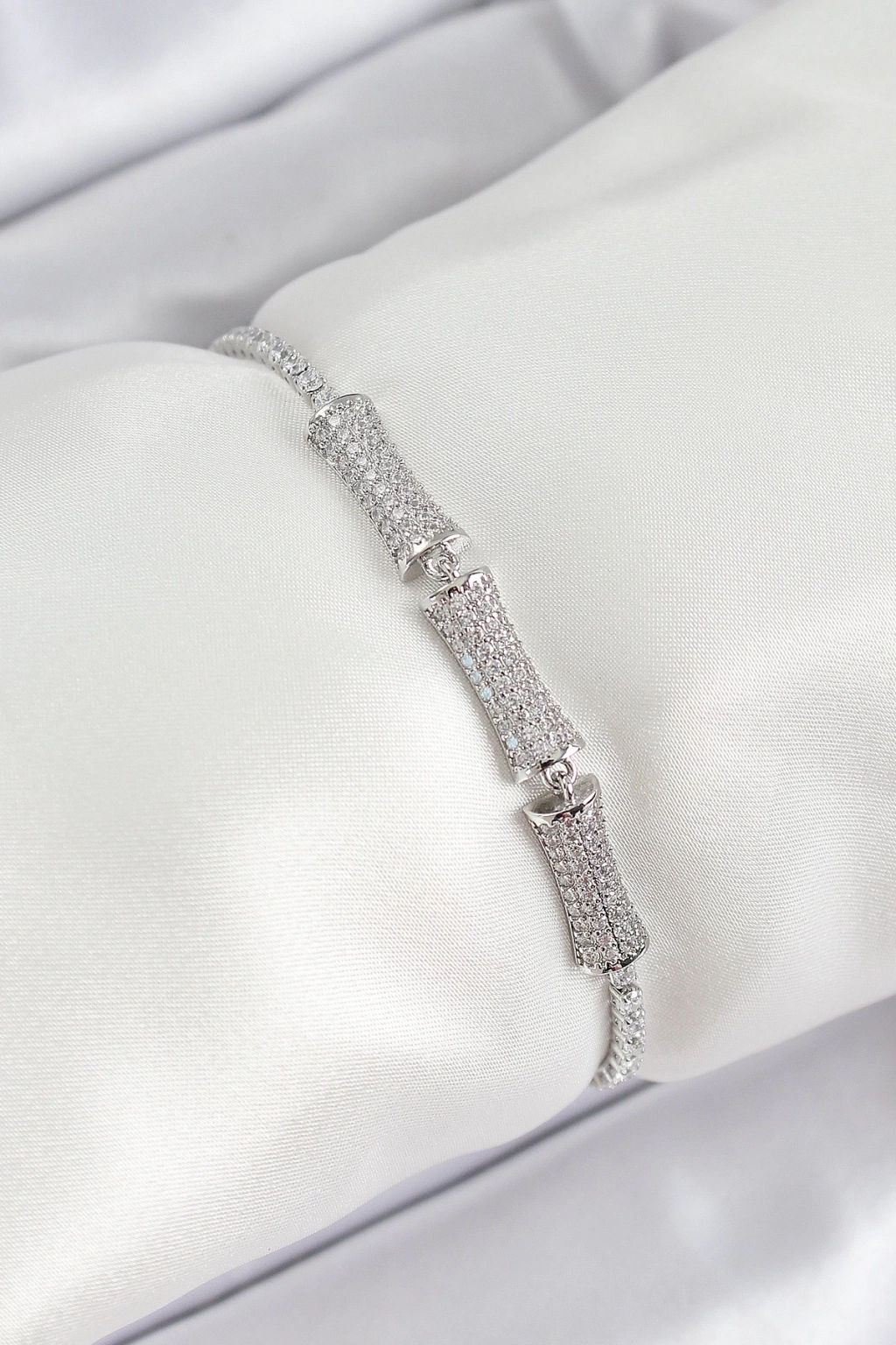 ® Pirinç Gümüş Renk Zirkon Taşlı Kemik Model Kadın Bileklik