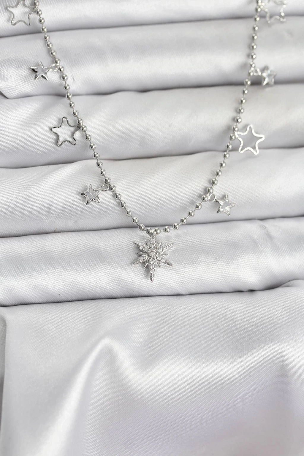 ® Pirinç Gümüş Renk Zirkon Taşlı Kutup Yıldızı Model Kadın Kolye