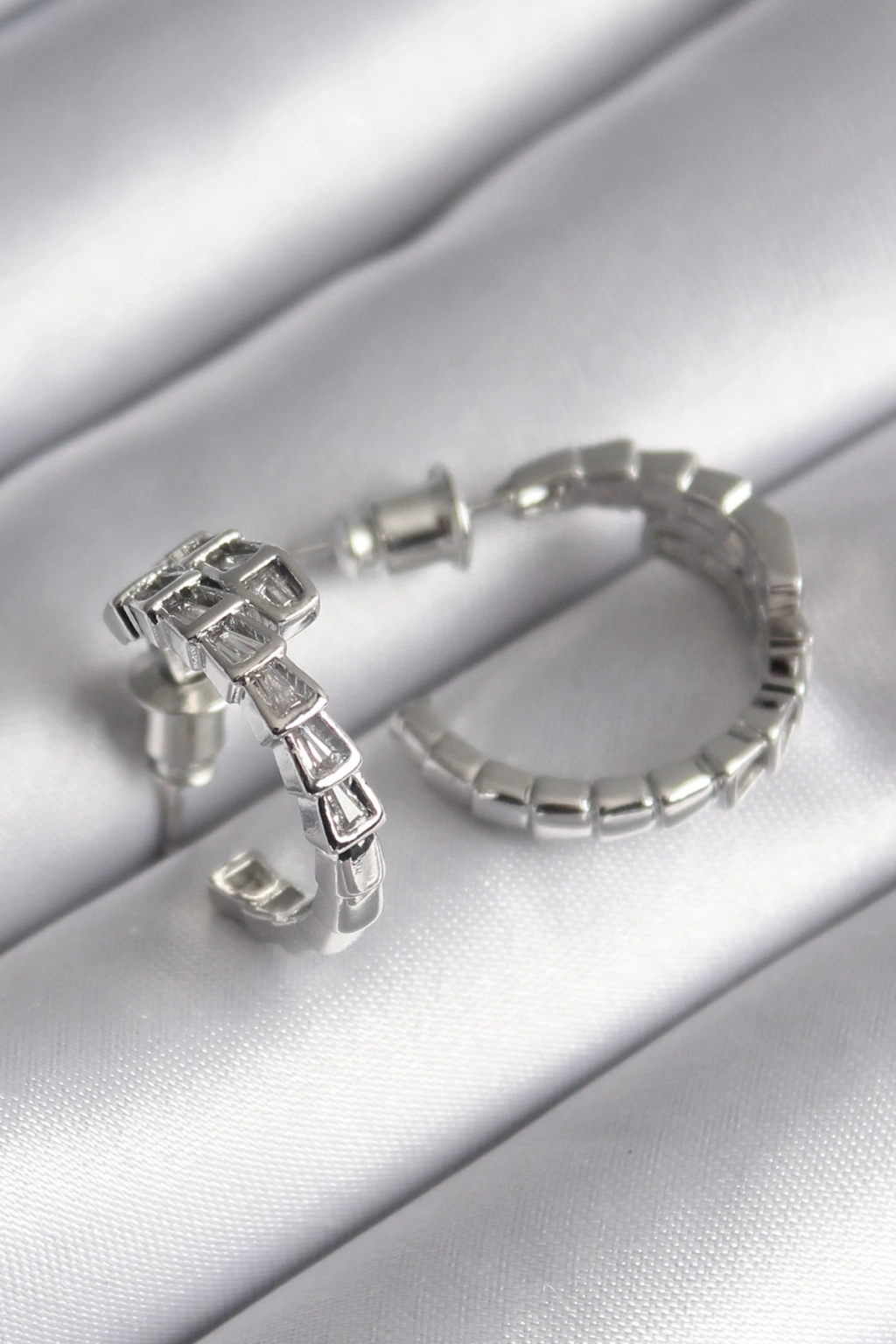 ® Pirinç Gümüş Renk Zirkon Taşlı Yılan Model Kadın Küpe