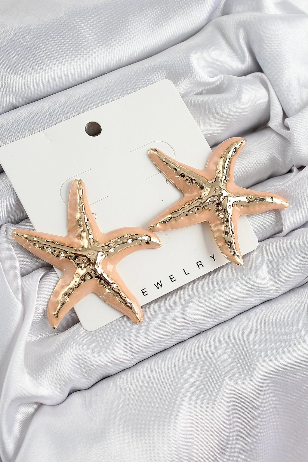 ® Pirinç Krem Deniz Yıldızı Model Vintage Kadın Küpe