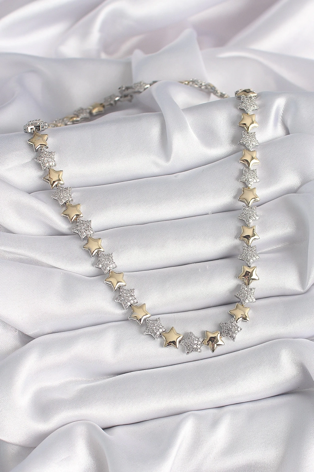 ® Pirinç Mix Renk Zirkon Taşlı Yıldız Model VIP Exclusive Seri Kadın Kolye