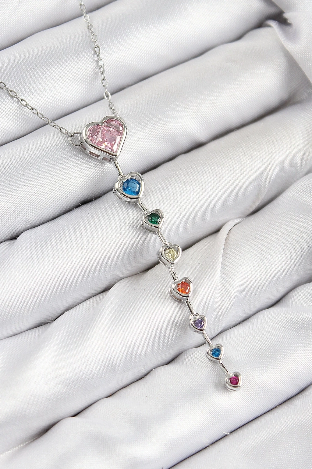 ® Pirinç Renkli Zirkon Taşlı Kalp Model Gümüş Renk Kadın Y Kolye