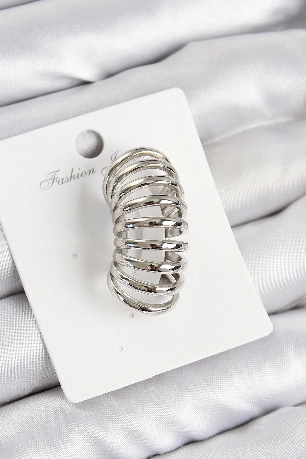 ® Pirinç Yay Model Gümüş Renk Sağ Kıkırdak Küpe
