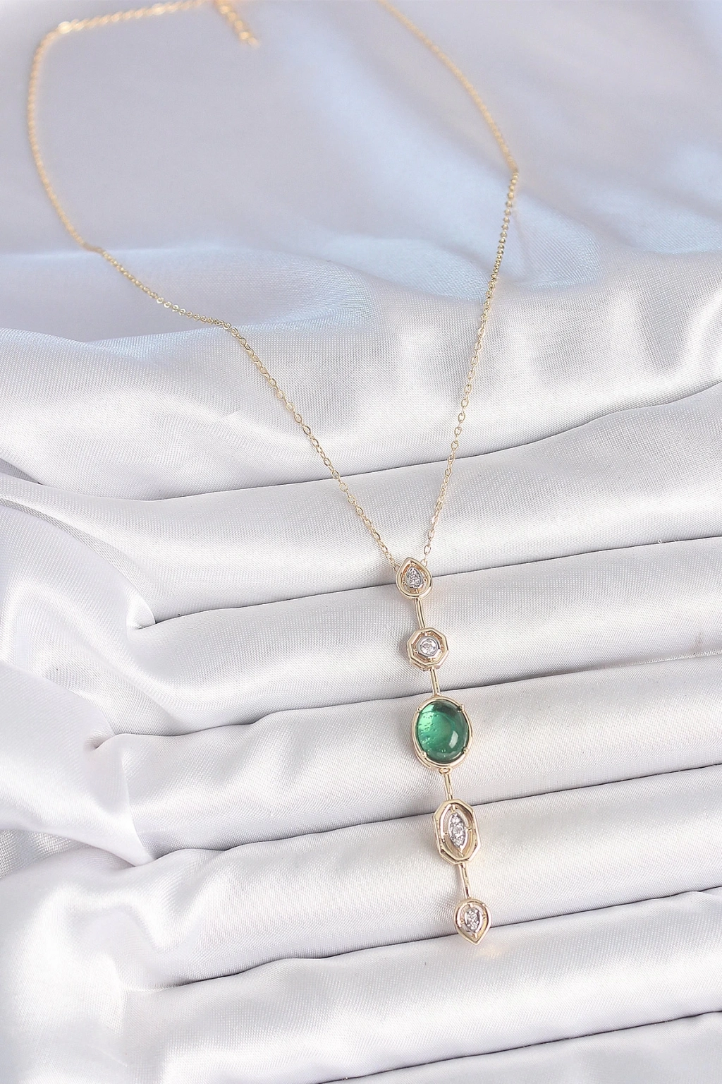 ® Pirinç Zincir Zümrüt Yeşil Gold Renk Zirkon Taşlı Y Kolye