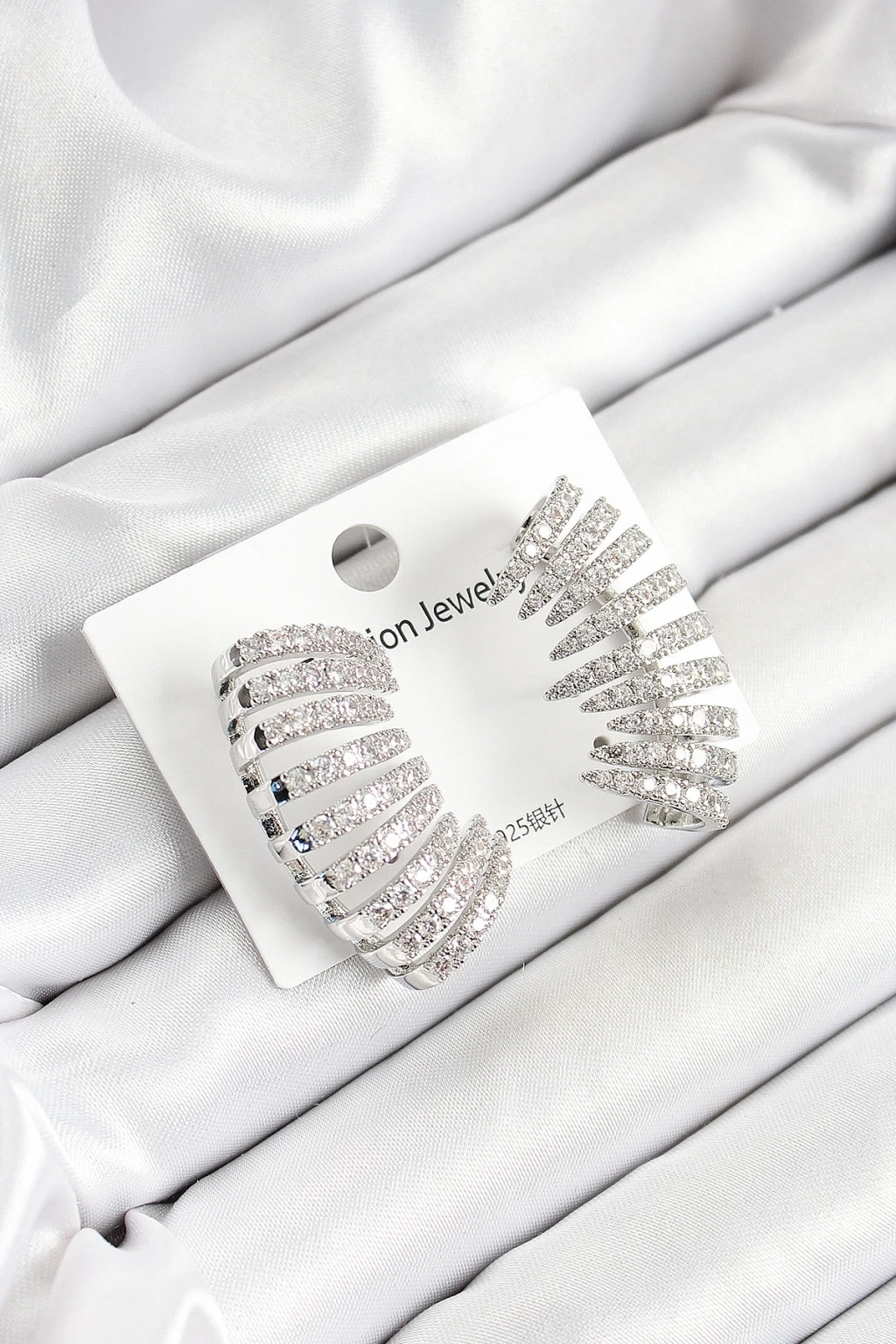 ® Pirinç Zirkon Taşlı Çoklu Görünümlü Model Gümüş Renk Kadın Küpe
