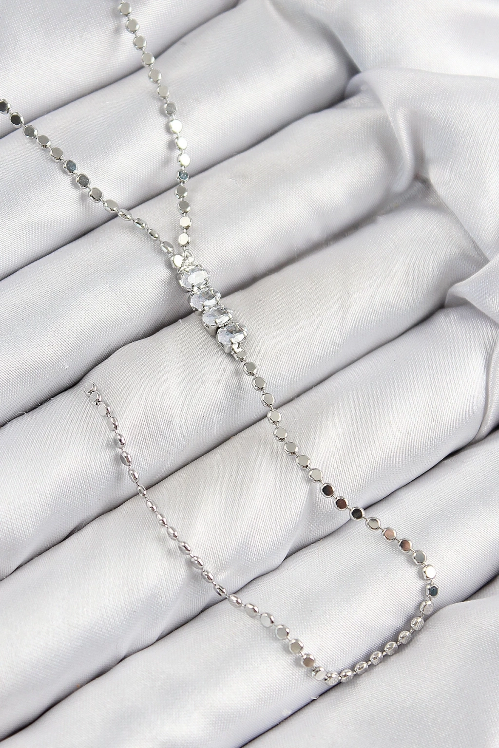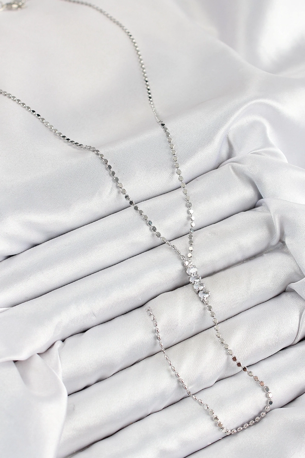 ® Pirinç Zirkon Taşlı Ezme Zincirli Model Gümüş Renk Y Kolye