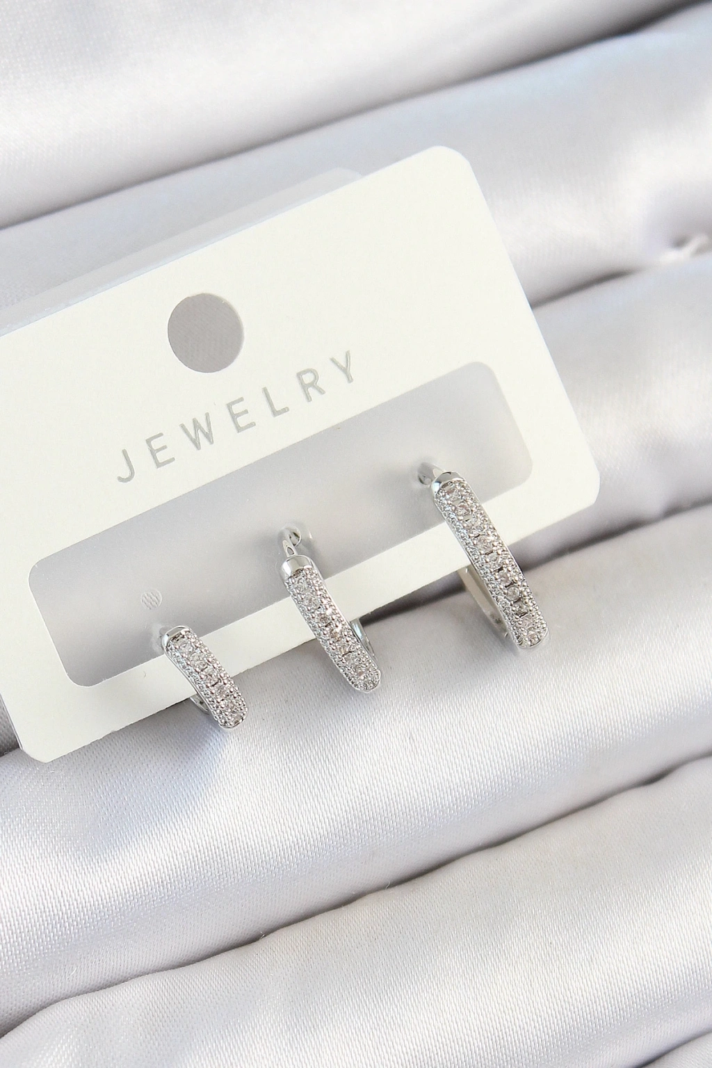 ® Pirinç Zirkon Taşlı Halka Model Gümüş Renk 3'lü Çift Kadın Küpe Set