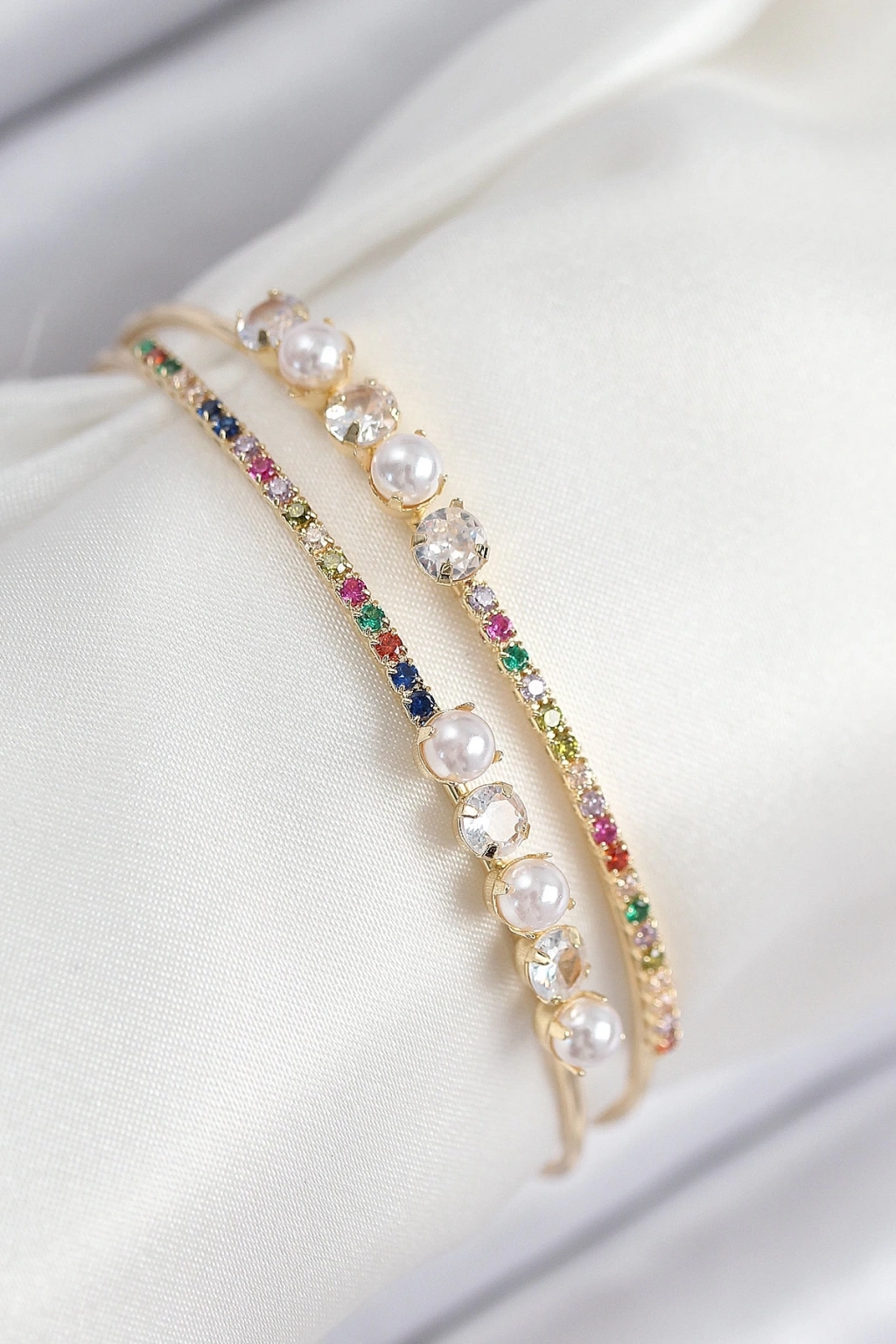 ® Pirinç Zirkon Taşlı İnci Model Gold Renk Kadın Bileklik