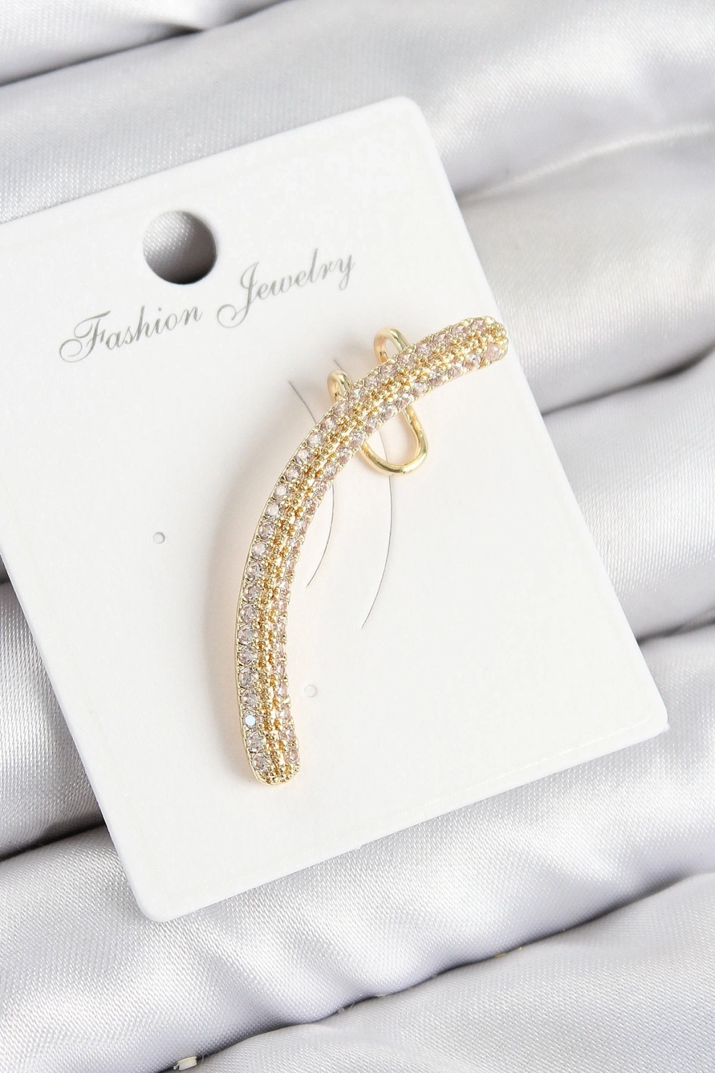 ® Pirinç Zirkon Taşlı Model Gold Renk Sağ Kıkırdak Küpe