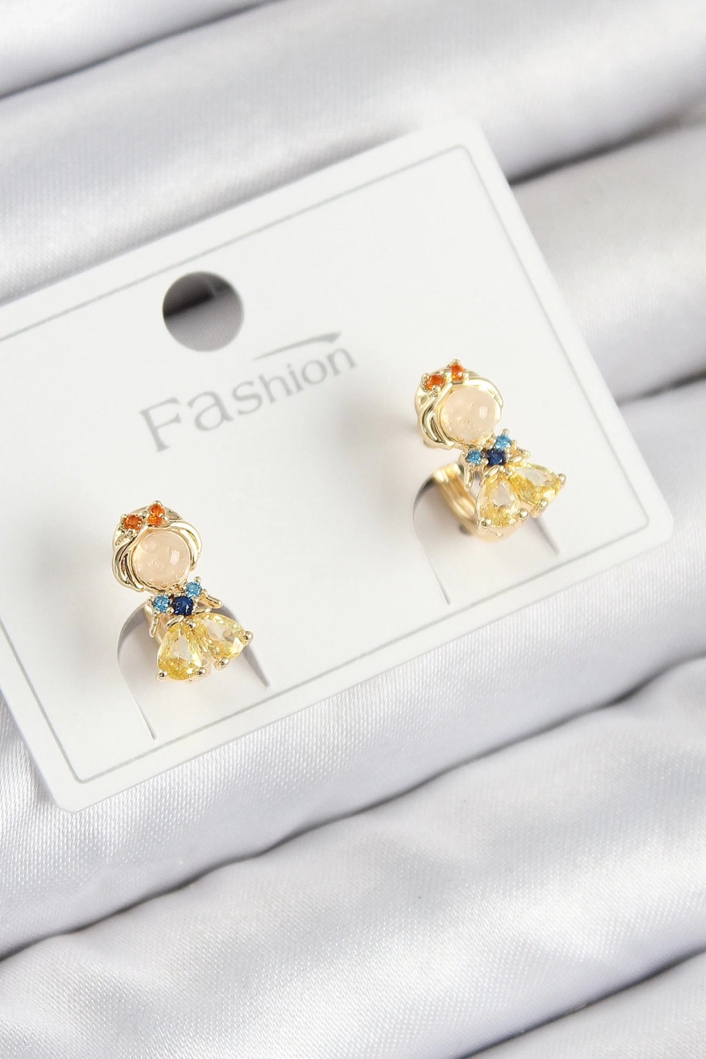 ® Pirinç Zirkon Taşlı Pamuk Prenses Model Gold Renk Çocuk Küpe
